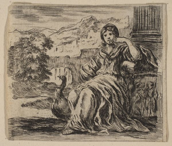 This small etching titled 'Jozef' presents an image of contemplation and sorrow. The figure, possibly Joseph from biblical narratives, is marked by his downcast gaze and the expressive gesture of his hand. This symbolic gesture of the hand—fingers splayed, palm turned slightly inward—reverberates through art history as a signifier of distress, supplication, or inner turmoil. Consider the evolution of such gestures: from ancient Roman orators using formalized hand movements to convey specific emotions, to the Renaissance masters who imbued their figures with profound psychological depth through similar means. Think of the grieving figures in devotional paintings, their hands mirroring this posture of lament. This motif resurfaces time and again, evolving through cultural and historical shifts, yet retaining its core essence of human suffering. The etching taps into a collective memory, resonating with viewers on a subconscious level, evoking empathy and a sense of shared human experience.