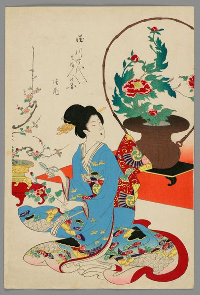 Editor: This is "Actors" by Kuniaki I. The prints remind me of stage plays. What do you see in this piece? Curator: The artist is referencing the transgressive space of the theater, where gender and identity are fluid, where actors challenge societal norms. Notice how the actor holds a doll-like figure, perhaps a commentary on performative identity. Editor: Performative identity? That’s fascinating. Curator: Think about the role of theater in Edo-period Japan, and how it offered a space for critiquing power structures, for exploring marginalized identities. Editor: I never thought about prints being political. Curator: This work reminds us that art is always engaged in a dialogue with its time, reflecting and refracting its social and political realities. Editor: Thanks, I will look into that.