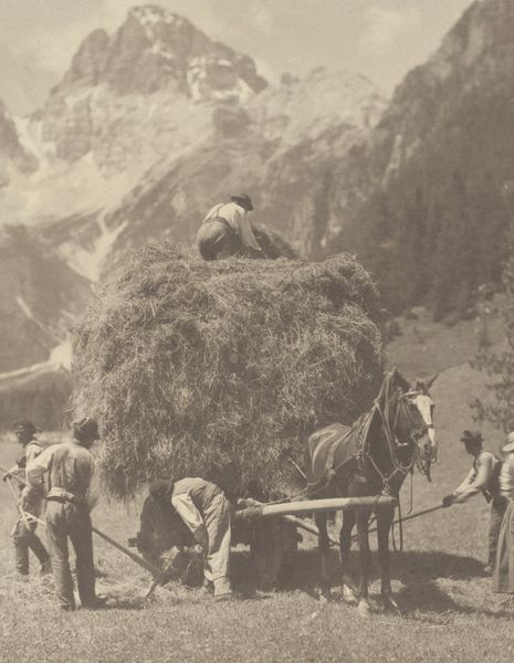 This photograph, "The Pass Finders, Piegan, Montana," was created by Roland W. Reed. It presents us with a muted palette, all browns and tans, giving it an antique feel. This makes me think about the process of capturing a moment, a scene, transforming something real into an image, a memory. Look at the way the figures on horseback line up against the backdrop of those majestic mountains. The texture of the image, it’s grainy, almost like you could reach out and feel the individual particles of the photograph itself. The opacity, the way the light filters through the scene, it’s all part of the story. Think of the way the mountains fade into the background, how the artist uses depth to give a sense of scale. It reminds me a little of the landscapes of someone like, say, Charles Marion Russell, another artist who was drawn to the American West, although Russell's work has a painterly looseness, whereas here, we have the stillness of photography. Ultimately, art is a conversation, a constant dialogue between the past and the present, reality and how we see it.