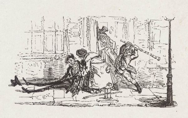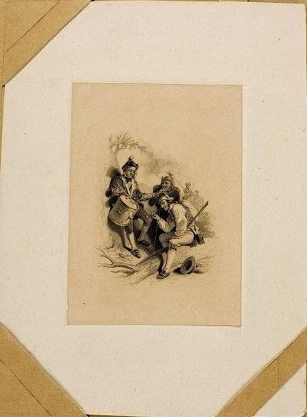 Editor: This is Joseph Andrews' "Goose Girl," housed at the Harvard Art Museums. It looks like an illustration, perhaps for a book. There’s a real contrast between the seated woman and the other two, and I’m curious about it. What do you see in this piece? Curator: Well, fairy tales often enforce social expectations of women. Considering Andrews' time, it's possible he's upholding the idea that a woman’s true place is in domestic labor. Is the seated girl, perhaps, failing in her duties in some way? Editor: That’s an interesting point. So, the 'goose girl' image isn't just whimsical, but could be reinforcing social norms? Curator: Precisely! These visuals, even if seemingly innocent, often reflect and perpetuate power structures. Recognizing those underlying themes is key. Editor: I see, looking at it that way definitely adds a whole new layer to the work! Curator: Exactly. It is about understanding the social commentary woven into the art.