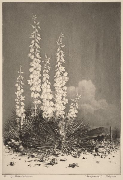 John Dillwyn Llewelyn captured this photograph, "Yucca Gloriosa," using the early photographic process. The sepia tones evoke a sense of nostalgia, framing the yucca plant in its garden setting. Notice how Llewelyn structured the composition. The yucca rises centrally, its form a study in contrasts—the spiky leaves at its base against the soft, almost cloud-like flowers atop. This play of textures draws the eye upward, animating the entire scene. The surrounding foliage, though less sharply defined, adds depth, creating a backdrop that highlights the plant’s architectural presence. The photograph is not merely a botanical study; it’s an exploration of form and light. The tonal range, from the rich browns of the earth to the pale highlights on the flowers, functions as a language, conveying the scene's essence. It invites us to consider how early photography aimed to capture not just the image, but also the very spirit of its subjects.