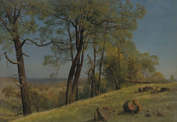 Joakim Skovgaard created this landscape with oil on canvas, and it is held at the SMK in Copenhagen. The immediate impression is one of expansive tranquility, achieved through a masterful arrangement of space and light. The composition pivots around the trees to the right, their dense foliage rendered with broad brushstrokes and variations of green and brown, leading your eye towards the serene, muted tones of the horizon. Skovgaard's use of aerial perspective—notice how colours fade into the distance—creates depth, inviting you to contemplate space not just as a visual element but as an emotional experience. The painting explores the semiotic interplay between nature and the gaze. Are the trees a screen framing a view, or are they a part of the landscape? This ambiguity invites a deeper questioning of perception itself. The painting's formal structure encourages an ongoing negotiation between the seen and the unseen, reminding us that art's meanings are always contingent, always in process.