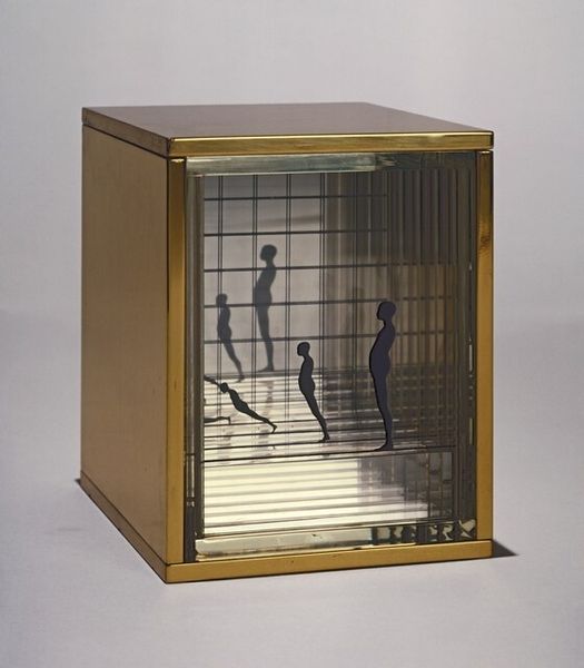 Editor: This mixed-media piece, "Untitled" from 1980 by Robert Irwin, it kind of looks like an architectural model encased in glass. It feels strangely detached, almost like a photograph of a memory. What's your take? Curator: Well, Irwin often blurred the lines between art object and environment. This piece operates within the context of postmodernism, specifically its appropriation of architectural spaces. The photograph of this older architectural building, when encased as an artwork, turns this monument into an object. Can you consider the social forces which would commodify monumental sites through consumerism? Editor: So, it’s less about the architecture itself and more about… how we *consume* architecture as an image? The commodification, as you said? Curator: Precisely. Think about how museums display and frame culture. How does presenting a photograph, sculpture, a *representation* of architecture in a gallery changes its meaning compared to its actual place in the urban landscape? What is the museum as a marketplace doing in displaying culture as consumerable and tradable images? Editor: It becomes an artifact, a representation, taken out of its original social context. Like, buying a postcard of a monument versus experiencing the monument itself. This model, or photograph encased in glass, now mediates and markets the architectural form as representation to be understood in relation to the museum and galleries that give it legitimacy. Curator: Exactly! And it challenges viewers to reflect on those power dynamics shaping artistic value. And not only artistic value, consider what you might lose about public life when it is recontextualized as tradable images of "artwork." Editor: Wow, I didn't even think of that! Now I'm seeing a critique of the art world itself. I’m really beginning to think critically about the commodification of culture itself. Thank you! Curator: My pleasure! Looking at art through its historical context gives so much to what otherwise might appear simply aesthetic.
