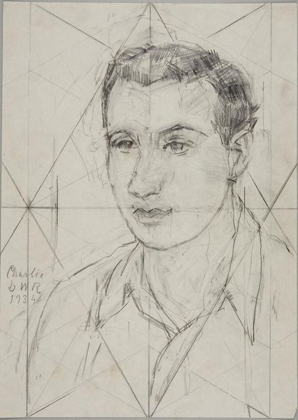 Curator: Looking at Denman Waldo Ross’s “Arthur Ewart Brown,” this sketch presents a figure lost in thought. Editor: There’s a raw, vulnerable quality to it. It feels like a peek into a private moment of contemplation, doesn't it? Curator: Absolutely, and what's striking is how Ross uses these geometric lines in the background. They almost cage the figure, reflecting a certain tension. Editor: They might represent a kind of existential framework, like the pressures and expectations Brown felt. Or perhaps just the artistic process laid bare. Curator: It makes you wonder about the relationship between artist and subject, doesn’t it? What was said, what was felt during its creation? Editor: It certainly leaves you pondering the many layers of portraiture, both seen and unseen. Curator: A very evocative work, indeed.