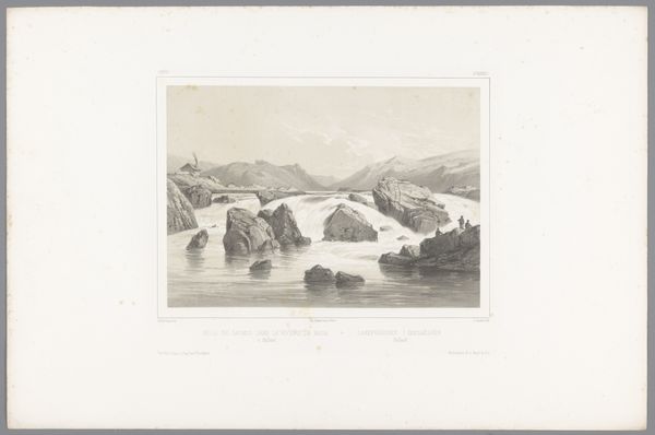 Curator: This print, housed here at the Rijksmuseum, offers a distant "Gezicht op de Gurgler Ferner, in Tirol"—a View of the Gurgler Glacier in Tyrol. It’s rendered with ink on paper using engraving. Created sometime between 1826 and 1900, it pulls you right into the heart of the Romantic period, doesn't it? Editor: Yes, an icy Romantic heart indeed. It feels vast, cold, and strangely isolated, with its subdued tonal range. The sharp contrast of the jagged rocks against the smooth glacier evokes a sense of nature's raw power. There's a palpable chill in the air. Curator: Absolutely. What I find fascinating is the meticulous detail achieved through engraving. Look at the way the artist has rendered the different textures—the smooth, undulating ice, the rough, craggy rocks, even the faint suggestion of atmosphere in the distant peaks. Editor: The artist really has made extraordinary use of line. The perspective leads the eye skillfully, yes? And it appears to me that the white of the paper stock is deliberately exploited here to conjure the frozen wastes. In many respects, it is semiotically astute. The animals depicted seem a little strange. Are they intended as symbolic devices, or merely descriptive? Curator: They seem to add a touch of narrative—sentinels, perhaps? Or just witnesses to this magnificent, desolate scene. To me they are tiny symbols of the indomitable life that persists even in the harshest landscapes, don’t you think? I'm especially drawn to the play of light and shadow – that muted contrast seems deliberate, really heightening that feeling of serene isolation we discussed. Editor: Yes, quite right. This piece invites us, compels us, to reflect on the Sublime. The compositional structure, built on a clear division between the dark, sharp foreground and the expansive, illuminated background, only enhances that feeling. We have two sides of a coin revealed. Curator: Well, the enduring power of this unassuming print resides precisely there, in its capacity to still spark feelings. To take me away somewhere beautiful, and haunting. It whispers rather than shouts and for me, that makes it something special. Editor: Indeed. In sum, we are compelled to observe the intrinsic artistic merits within. A perfect synthesis.