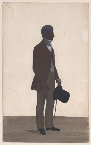 William Henry Brown made this silhouette of Mr. Pierce of Springwater, New York, using cut paper, likely in the mid-19th century. Silhouettes like this were typically made by drawing the outline of a person's shadow, then carefully cutting it out of black paper. What's interesting here is the stark simplicity of the materials. Brown worked with the humblest of means to capture the essence of his sitter. The choice of a silhouette is particularly telling. It flattens the figure, reducing Mr. Pierce to a mere outline, a shadow of his former self. The labor involved in creating this silhouette would have been meticulous, requiring a steady hand and a keen eye. These profiles were relatively inexpensive, but were still time-consuming to produce and required a skilled hand. The rise of photography would eventually make this artform obsolete. This artwork challenges our traditional notions of art, inviting us to appreciate the skill and artistry involved in even the simplest of crafts. It also reminds us that art is not just about the final product, but also about the materials, the making process, and the social context in which it was created.