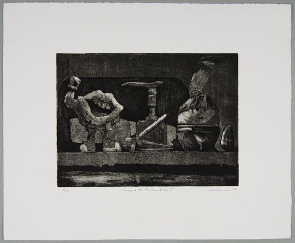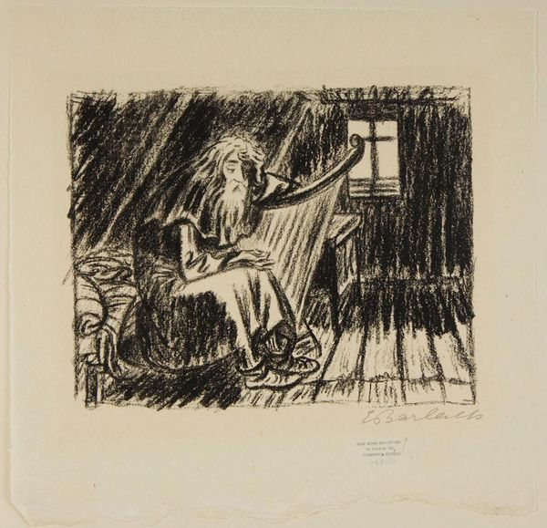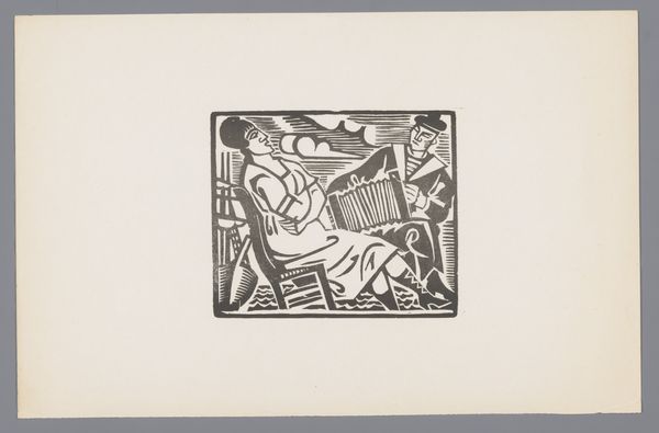 Editor: This is "Card Game" by W. Mezentseva. The medium looks like a woodcut or linocut. It feels like a somber scene, but also strangely intimate. How does this artwork speak to you? Curator: It reminds me of the social realism movement. The stark contrast, the focus on ordinary people, possibly reflecting socio-political issues of the time. How might the context of its creation influence its reception? Editor: That’s interesting. I hadn’t thought about it in terms of social commentary. So, the artist's personal experiences are reflected here? Curator: Possibly. Art is never created in a vacuum. The socio-political climate and public sphere can definitely shape its meaning. This piece encourages us to consider the artist’s role in society. Editor: I see. It makes me think about how art shapes society and vice versa. Thanks for your insight!