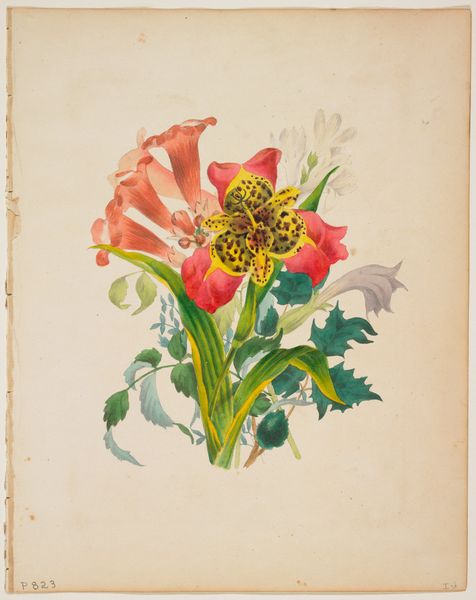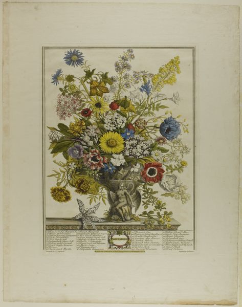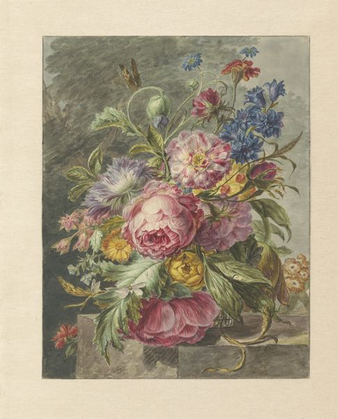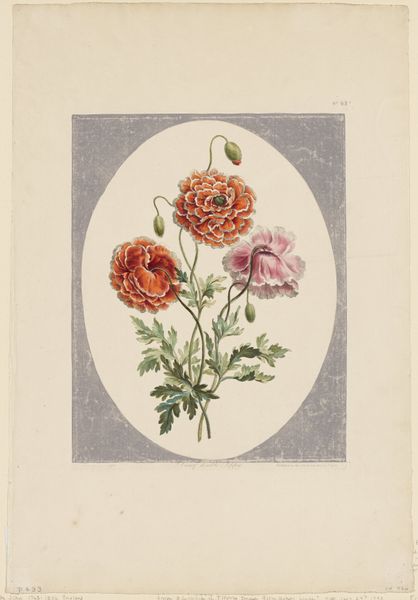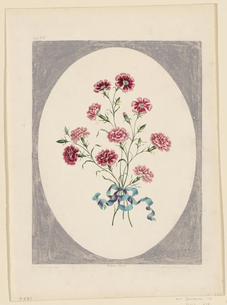 Editor: Here we have Ruth M. Barnes' watercolor, "Hooked Rug," created around 1936. There’s something so charming and folksy about it, yet also strangely… intense with all those tightly packed petals. How do you interpret this work? Curator: That intensity, as you call it, is precisely what grabs my attention. Think about the historical context: 1936, the heart of the Great Depression. For many women, particularly in rural communities, these crafts weren't merely hobbies; they were vital forms of economic self-sufficiency, ways to transform scraps into necessities, even beauty. Do you see how the "hooked" texture she creates mirrors that resourcefulness? Editor: That makes perfect sense! I was so focused on the visual aspects that I hadn't considered the social implications. So the choice of subject matter and the meticulous detail speak to something beyond aesthetics? Curator: Precisely. It’s about resilience, resourcefulness, and the quiet power of domestic labor, particularly by women. The flowers themselves, though rendered realistically, are almost aggressively vibrant. They’re not just pretty; they're demanding attention, asserting a presence. How does that resonate with you? Editor: I think I see it. It's a subtle form of resistance, transforming humble materials and everyday skills into something bold and assertive. Almost a claim to agency in a time of economic hardship. Curator: Exactly. This piece transcends the mere depiction of flowers. It becomes a powerful commentary on the lived experiences of women during the Depression, reclaiming value and visibility through craft. Editor: I will definitely consider this now every time I see what I took for "traditional" art forms, realizing that it’s always crucial to delve into its broader context. Thanks for shining some light here! Curator: The pleasure is mine. This deeper understanding fosters respect for creative pursuits that for so long were largely underappreciated.