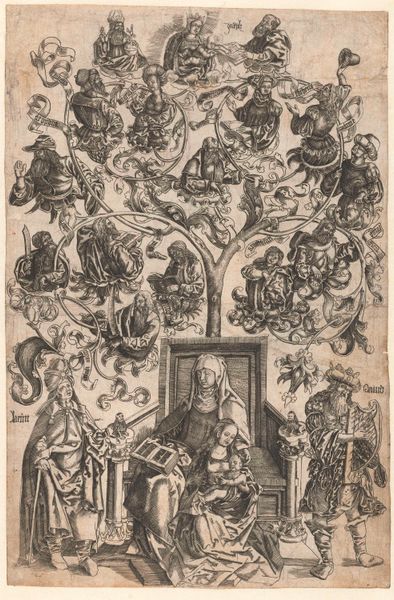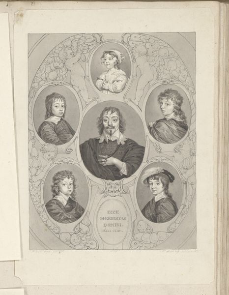 Leonardus Venroy made this composite portrait of the Princes of Orange using etching and engraving, likely in the 1700s. The material here, paper, is humble, but the techniques involved are anything but. Etching and engraving demand tremendous skill; each line is incised with a sharp tool, or bitten into the surface with acid. Look closely, and you can see the different qualities of line achieved by these two methods – the clean precision of engraving, versus the more spontaneous character of etching. The printmaking tradition has a rich history, particularly in disseminating imagery and information to a broad public, think of maps and printed news. In this case, the portraits celebrate power; these are not spontaneous likenesses, but carefully constructed images intended to convey authority. While the print medium democratizes access to these images, it also reinforces the social hierarchy they represent. Ultimately, this work reminds us that even seemingly simple materials can be vehicles for complex social and political meanings. The convergence of craft, technique, and social context is what gives this seemingly straightforward print its enduring fascination.