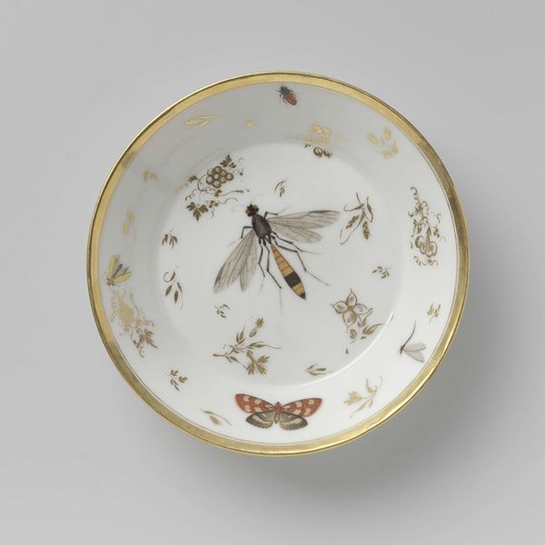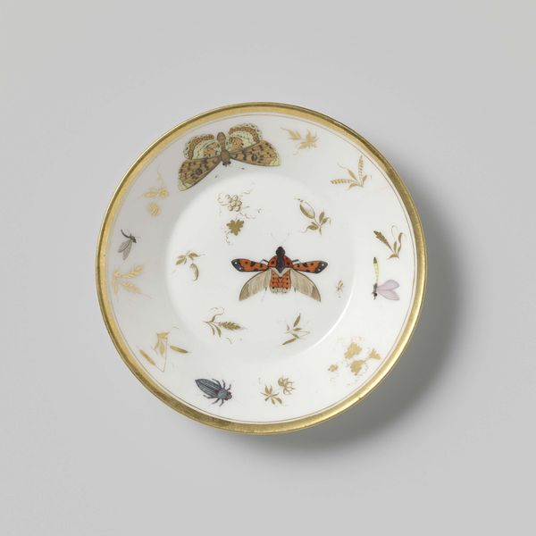 This porcelain saucer with gilded rim was made by the Koninklijke Porseleinfabriek Dommer & Co. It is decorated with agricultural trophies tied together with ribbons. The factory was founded in 1774 in Loosdrecht, near Amsterdam. The presence of the Stadtholder, Prince William V of Orange Nassau and his court, made Loosdrecht an attractive place for entrepreneurs in luxury goods. As with other porcelain factories in Europe, the undertaking was driven by the desire to produce local substitutes for expensive imports from China and Japan. Factories were also keen to avoid the outflow of precious metals that went to pay for these goods. The decorative motifs on this saucer remind us that the factory depended for its success on local patronage and resources. Images of rural prosperity would have appealed to wealthy Dutch consumers. Understanding this artwork requires an appreciation of economic and social history, which can be gained by studying archival documents and other historical sources.