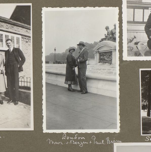 This scrapbook page, by Carolina (Loentje) Frederika Onnen, presents four images of friends on the street, at the beach, and by the Scheveningse Pier in the Netherlands. The way the photos are arranged feels almost intuitive, less about rigid composition and more about capturing a mood. What’s striking to me is the texture of the photographs themselves, their material presence. The monochromatic tones lend a timeless quality, like a faded memory, while the visible grain adds a layer of abstraction to the images. I’m drawn to the photo on the bottom left, of a man with two dogs on a beach. The blur of the waves behind them makes them almost like actors on a stage set, where the line between reality and performance is blurred. Onnen’s photographic eye reminds me a bit of Hannah Höch, in the way she uses collage and juxtaposition to create new meanings. Art here becomes a form of dialogue across time.