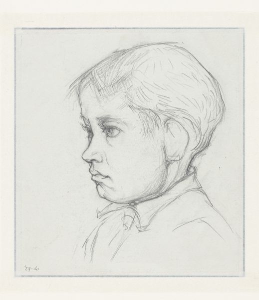 Curator: Today we're looking at "Portrait of Giovanni Ricasoli, aged 5", an etching done in 1808 by Luigi Sabatelli, currently held at the Metropolitan Museum of Art. Editor: There’s a striking melancholy to this piece, isn’t there? The stark lines and the young boy's intense profile, all rendered in such stark monochrome, create a mood that is pensive if not altogether sad. Curator: Yes, it's fascinating to consider it in the context of early 19th century portraiture. These were often commissioned by wealthy families, functioning as status symbols and also conveying ideas about family lineage. It prompts me to think about who this Ricasoli family was and why they wanted Giovanni immortalized at such a tender age. Editor: From a purely compositional standpoint, the artist’s mark-making seems really innovative. Notice how the dense, almost scribbled, lines create depth around his head and neck. It almost vibrates with an internal energy and suggests a barely-restrained exuberance held in tension with the more formally rendered features. Curator: Absolutely, and one can argue Sabatelli may have used that line work to reflect a growing trend towards Romanticism, moving away from the rigidity of earlier Neoclassical styles, you see similar approaches to depictions of hair for example elsewhere at the time, although in painted media more often than etching. Editor: That's a good point about the hair. Look how those unruly curls contrast with the neat, almost aristocratic cut of his jacket. Is this is a controlled depiction of a subject or does the medium choice push its boundaries? The very controlled etched line is being challenged by a seemingly freer hand. Curator: It highlights a tension present in the subject himself, between youth and social expectation, and it’s telling he opted for printmaking – a more democratic art form, potentially signalling a desire to circulate this image widely, beyond the confines of the family. It brings into question the role this portrait plays within the shifting social and artistic landscapes of the early 19th century. Editor: I’m also captivated by how the simplicity of line is all it needs to express this portrait; how effective. You understand his age, demeanor, perhaps even a little of the society from which he is coming just by line and rendering. Curator: A lovely synthesis of technique, cultural context and form making this etching an especially insightful work of art. Editor: Agreed. It gives a real immediacy which connects us still.