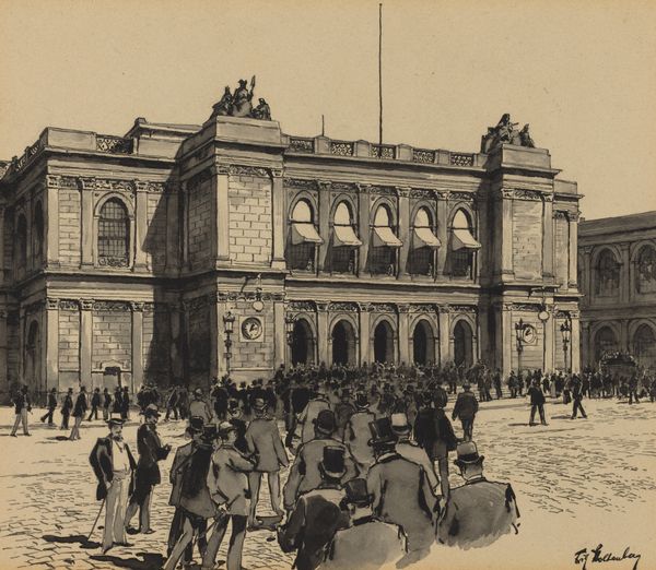 This photograph of the Basilica della Santissima Annunziata del Vastato in Genoa was taken by Alfredo Noack, who lived from 1833 to 1895. It captures a moment in the urban life of Genoa, and also invites us to reflect on the relationship between space, power, and identity. The basilica, with its imposing facade, looms large, symbolizing the historical dominance of the Catholic Church in Italian society. The figures populating the square—perhaps merchants, tourists, or locals—hint at the diverse social fabric of the city. The clothing and activities suggest a complex interplay of class and gender roles. Noack's choice to frame the basilica within the context of daily life is particularly interesting. It reminds us that religious institutions are not isolated entities, but rather integral parts of the social and economic landscapes they inhabit. The photograph becomes a meditation on the convergence of faith, commerce, and community in the heart of Genoa.