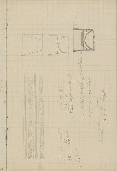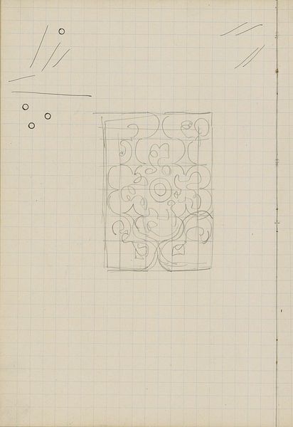 Editor: So, here we have "Ornamenten," an undated drawing from around 1925 by Carel Adolph Lion Cachet, rendered in graphite on paper. It looks like preliminary sketches, perhaps for some larger design project. I'm struck by the geometric forms alongside what appear to be some hieroglyphic-type elements… It gives a kind of mystical vibe, somehow architectural and ancient all at once. What do you make of it? Curator: Oh, that's an interesting initial reaction! "Mystical," yes, I feel that too! Cachet, you know, he wasn't just playing around with shapes. He had this deep fascination with symbols, right? He saw them as keys unlocking hidden meanings… The way he combined Art Nouveau-ish curves with those quasi-Egyptian forms is his language! What's it saying? What could those abstracted symbols MEAN? That's up for grabs… He might be saying something pretty deep about history repeating, maybe? Look closely; how does it make YOU feel? Editor: History repeating... That’s an interesting read. Seeing them together like this feels deliberate. How typical was he as an Art Nouveau artist, incorporating elements that might predate the style so vividly? Curator: Cachet, see, was never one to toe the line. I mean, yes, the stylized botanical forms nod to Art Nouveau but, he twists it, adds something…almost rebellious, doesn’t he? He pulls these archaic shapes to give an older foundation, to the idea of ornament and structure, it gives it some heft! I wonder what architects he was checking out in museums, right? How does it fit against the backdrop of its time? I feel transported somewhere lost... Do you see what I mean? Editor: Absolutely! So he's almost using these "ancient" visual cues to comment on modernity or give Art Nouveau a sense of timelessness… Thanks for making the connection for me! Curator: It's a joy! And you see now! I now feel even closer to Cachet; so, it feels we achieved his design objective. What could be better than to spend our lives with objects, images, design and thinking!?