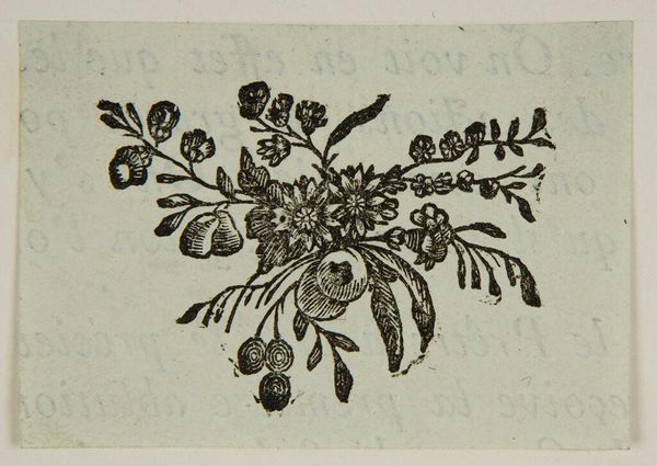 Curator: This is "Piece III," a fascinating anonymous work currently held at the Harvard Art Museums. What strikes you first about it? Editor: The density! Look at the mass of interwoven flora filling that basket. It almost seems about to burst. Curator: The use of such imagery, especially floral arrangements, were often intended to convey complex social messages during this period. Editor: I'm drawn to the graphic quality. The strong contrast of black and white simplifies the forms but also amplifies the overall impact. Curator: Exactly. The presumed original cultural context likely informed a shared understanding of the various flowers used. Editor: Regardless of lost context, the pattern-making itself holds its own aesthetic power. The basket's weave, the leaves' veins, it's mesmerizing. Curator: Indeed, it remains a potent reminder of the intersection between art, society, and the very human desire to communicate through symbolic imagery. Editor: Yes, even without knowing the artist's intentions, its formal qualities leave a lasting impression.
