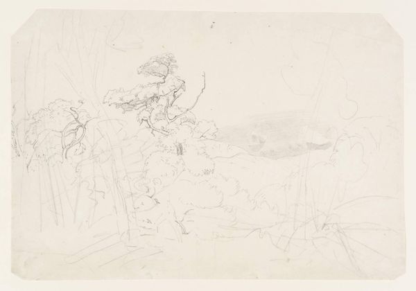 Editor: Here we have Thomas Hewes Hinckley's pencil drawing, *Delaware '64*, made in 1864. It's a wispy landscape... almost ethereal. What strikes me most is its incompleteness and how it almost disappears into the white of the paper. What do you see in this piece? Curator: I see a work deeply intertwined with the tumultuous era of the Civil War. Consider the date, 1864. This wasn’t just a landscape; it was created during a moment of profound national crisis. It compels me to question what this seemingly serene depiction of the Delaware River might conceal. Is it simply an escape, or could it be a coded reflection on a fractured nation? What voices are being silenced, both literally and figuratively, in the artistic process and reception of art? Editor: So you see it less as a tranquil scene and more as a reflection of the unrest of the time? Do you think Hinckley intended it to be read that way? Curator: I believe it is less about the artist's explicit intention, which we can never fully grasp, and more about understanding the work within the context of its creation and reception. The very act of portraying nature so delicately while a brutal war raged suggests a yearning for peace and unity, or even a quiet resistance against the violence, or perhaps, mourning. But it also could reflect the role that nature plays for wealthy, white landowners. The access to leisure, the privilege to paint… whose stories are erased in this idyllic rendering of nature? Editor: That's a powerful point. I hadn't considered how the simple act of creating this drawing during such a time could be a statement in itself. Curator: Exactly. It invites us to unpack the social, political, and even economic implications embedded within what might initially appear as a simple landscape. It calls for an interrogation beyond aesthetics. Editor: Thank you! This has really opened my eyes to seeing art as a product of its time and not just an isolated creation. Curator: Absolutely! That's the ongoing task: examining art through an intersectional lens, and uncovering these hidden dimensions.