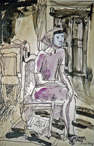 Maria Bozoky created this watercolor painting, called 'In a Park', sometime during the 20th century. Bozoky lived through some of Hungary’s most turbulent times, including both World Wars and the rise and fall of Soviet influence. In this painting, we see a woman seated on a park bench surrounded by birds. The setting, with its flowering trees, suggests a space of leisure and reflection. The woman's simple dress and posture evoke a sense of everyday life, perhaps hinting at the quiet moments of respite amidst broader societal changes. Bozoky’s choice to depict such a scene might be interpreted as an intimate portrayal of the female experience within a rapidly changing world. As she lived and worked in a male-dominated society, Bozoky’s intimate portrayals offer a perspective on female identity and presence. The painting resonates as a subtle yet powerful statement on personal identity and the search for peace within the everyday.