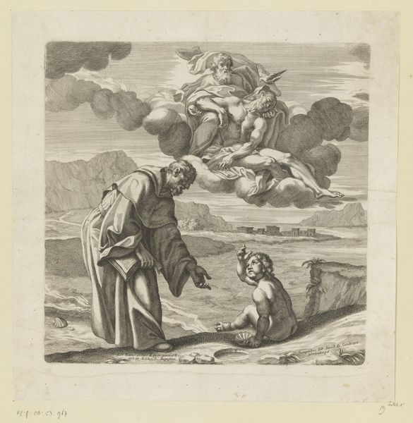 Editor: We’re looking at Reinier Vinkeles' "Zondvloed" from 1780, a print in the collection of the Rijksmuseum. It's an engraving depicting a chaotic flood scene. It’s quite bleak and dramatic. What are your initial thoughts on this piece? Curator: This work strikes me as deeply embedded in its historical moment. In the late 18th century, catastrophic narratives, particularly from religious texts, served various purposes. Consider the role of the church and state - how did depictions like this reinforce social hierarchies or anxieties about divine judgment? It’s not just about illustrating a story, but about the socio-political message it conveyed. Editor: That’s interesting. I was just focusing on the visuals, the way the figures are all flailing. Curator: Precisely, but think about how even the depiction of that chaos is curated. Baroque art often used dramatic scenes to evoke strong emotions, which served to make points more memorable. Do you notice any specific stylistic choices that amplify this emotional impact, or perhaps, contribute to a particular interpretation of the Flood? Editor: The figures are very expressive, lots of frantic gestures. Is that typical of the time? Curator: Definitely. These artists and the institutions they exhibited in knew how to pull on the heartstrings. Look at the detail. It wasn’t just about technical skill, but about the emotional and perhaps moral impact. Considering its public display in the Rijksmuseum today, how might our interpretation shift again, divorced as we are from the original immediate context? Editor: I never thought about it like that, the way historical context influences our experience. Thanks for the new perspective. Curator: My pleasure. It's a good reminder that art exists within – and actively shapes – the social and political landscape.