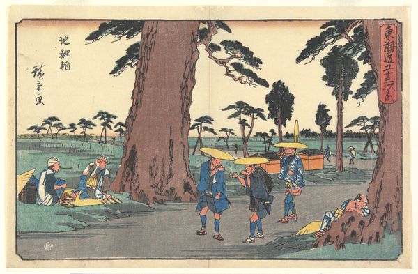 This woodblock print, created by Utagawa Hiroshige, captures a scene from the Yoshiwara district. Dominating the horizon is Mount Fuji, a powerful symbol in Japanese culture. Its serene, snow-capped peak represents not only natural beauty but also spiritual purity and national identity. Consider how mountains, as symbols, echo across cultures. Like the Greek Mount Olympus, Fuji is more than a geographical feature; it's a sacred space that embodies cultural memory. In viewing Fuji, we see echoes of humanity’s timeless reverence for nature's sublime power, inspiring awe. Even the trees are significant. Note the way they are arranged to provide framing, perspective and depth. In classical art, trees serve to denote specific places and act as a cultural marker. We feel the psychological impact of the scene, triggering subconscious associations tied to cultural identity and collective memory. This powerful symbolism resonates far beyond its immediate context.