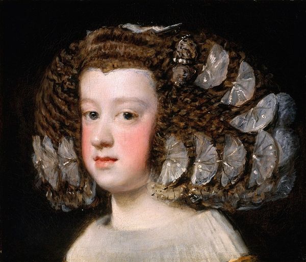 This is Claude Déruet's portrait of "Louis XIV of France." Here, the artist uses a subtle palette to capture the tender age of the young king, setting him against a warm, terracotta backdrop that pushes the figure forward. The composition is tight. The focal point of the artwork is the child monarch’s gaze. Déruet captures Louis's youthful features with delicate brushstrokes, softening the contours of his face to emphasize his innocence. The texture of the ermine cape and feathered headdress add an ornate and elegant quality. The regalia—the fleur-de-lis embroidered on his coat, the blue sash—are not just symbols of royalty but also act as signs that solidify his identity and status. The careful arrangement of these elements is a construction of power, suggesting that his rule is divinely sanctioned, embodying a system of signs that communicates the ideology of monarchy. In essence, this portrait is a masterclass in constructing an image that blurs the line between the innocence of youth and the imposing weight of kingship.