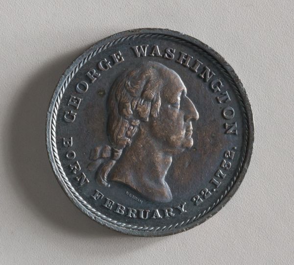 Curator: Look at this intriguing portrait relief, "Benjamin Franklin," created in bronze in 1859 by Joseph H. Merriam. It resides here at the Metropolitan Museum of Art. Editor: My first impression is the almost austere formality—the profile view, the cool, reflective surface of the bronze. It feels both commemorative and a bit...distant, don’t you think? Like Franklin as a symbol rather than a man. Curator: I see what you mean, it does possess that Neoclassical detachment, perhaps even more so because it’s a relief sculpture. It invites consideration of the "myth" of Franklin—the self-made man, the inventor—all while neatly bypassing the messier realities. Editor: Exactly. It’s almost currency-like, invoking power, authority, and permanence. The very medium – bronze – contributes to this, screaming legacy. But what legacy? The artist chooses to freeze him in this very specific light, and as a profile we see so little depth, hiding from anything beyond surface. It reflects the early history-makers controlling the narrative. Curator: Absolutely, and this piece appears rather late on, almost as a commentary on the romantic era... Merriam reduces Franklin to pure essence: the profile, the name, the date of birth. All enshrined in enduring metal. It makes me consider the different layers and perspectives one could use to engage with the Franklin "brand." Editor: Thinking about it in the current era, and understanding Franklin's complicated position on issues of race and equality makes viewing this seemingly simple portrait that much more complicated, in particular around memorializing certain figures. It makes me wonder how we re-evaluate the stories these monuments tell—who they include, who they erase, who benefits. Curator: Yes, a worthwhile and challenging contemplation on whose stories get told, how, and by whom. This "Benjamin Franklin" sculpture becomes more than just an object; it turns into a site of negotiation and even a spark for further, more thoughtful, critical investigation of our cultural inheritance.
