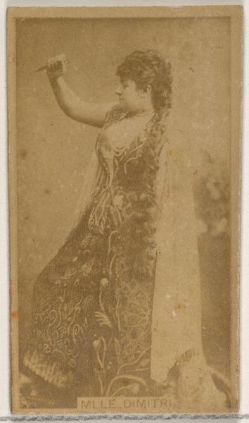 This is Sara Bernhardt, from the Actors and Actresses series, made as a cigarette card by Allen & Ginter. It's printed on a small piece of card, using photographic and printing technologies that were becoming increasingly streamlined at the time. The image itself, sepia-toned and slightly blurred, speaks volumes about the era's evolving relationship with celebrity and consumption. Bernhardt, a renowned actress, is presented here not as a figure of high art, but as a collectible item, bundled in with Virginia Brights Cigarettes. Consider the labor involved, from the cultivation of tobacco to the mechanized printing of these cards. Each step, a cog in the machine of mass production. The card transforms her image into a commodity, readily available for the price of a pack of cigarettes. This collapsing of cultural value into consumer goods is a hallmark of the late 19th century, reminding us that even art is not immune to the forces of labor, politics, and consumption.