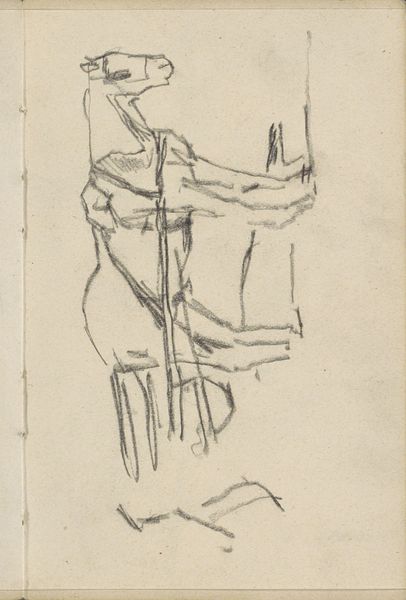 George Hendrik Breitner made this sketch, entitled ‘Paard’ or ‘Horse’ in English, using pencil on paper. The drawing captures the dynamism of a horse’s form through its masterful use of line and shading. Breitner's strategic application of shadows creates a sense of depth and movement, which brings the figure to life. The composition, although minimal, effectively captures the powerful tension of the animal as it thrusts itself forward. The energetic marks of Breitner's sketch reflect a keen interest in depicting modern urban life, particularly focusing on the vitality and intensity of the city. This interest aligns with the broader artistic movements of Impressionism and Realism. Ultimately, this sketch serves as a testament to Breitner's ability to convey motion and energy through simple means. The visible, expressive lines contribute to a sense of immediacy, inviting viewers to contemplate the evolving, transient nature of the world around them.