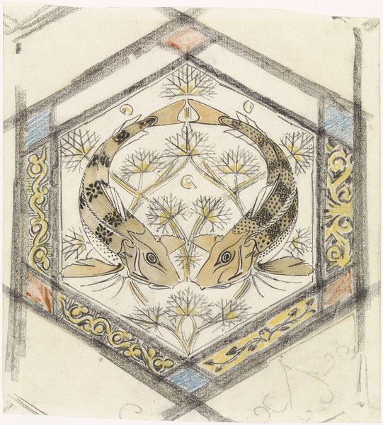 Editor: Here we have Jules-Edmond-Charles Lachaise's "Design for the decoration of a ceiling with rinceaux," likely created sometime between 1830 and 1897. It's a watercolor and gouache drawing. I'm really drawn to the detailed ornamentation; it makes me think of royal interiors, maybe Versailles? How might its historical context shape how we see it today? Curator: That's a very perceptive initial reaction! This design speaks volumes about 19th-century artistic trends and the patronage system. Decorative arts like this were not simply about aesthetics; they were powerful markers of social status. Aristocrats and the burgeoning middle class displayed such elaborate designs to project wealth and refined taste. Editor: So, it's less about pure artistic expression and more about social climbing through display? Curator: Precisely. Think about the museums that eventually showcased such works. They essentially democratized access, but also solidified a particular hierarchy of taste. The rinceaux motifs, those flowing, stylized leaves, link back to classical antiquity, invoking a lineage of power and prestige. Lachaise, as the designer, was therefore complicit in that reinforcement of hierarchy and values. Considering this, what political message do you see this design conveying? Editor: I hadn't considered that political layer, but the classical references and focus on wealth... It definitely screams established power. It also prompts the question, for whom was this level of craftsmanship intended, and who could afford it? Was this decorative style available only to the dominant societal classes, or was it a feature in more public venues as well? Curator: An excellent point! Examining decorative art like this reveals how artistic choices became tools for social differentiation, and in many ways, the display of them solidified cultural dominance in 19th-century society. It provides such insight into understanding that the way things look can reflect deeply ingrained values of society as a whole. Editor: Absolutely, seeing it that way shifts the perspective, I hadn’t realized the political charge behind the ornamentation at first glance. Thanks for showing how social standing impacts art's place in history.