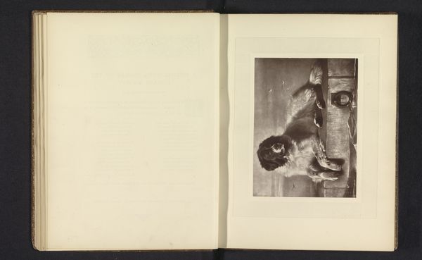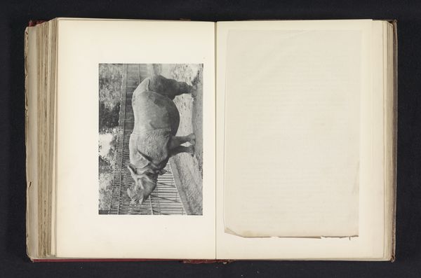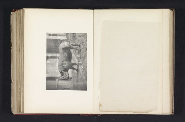 Curator: Here we have a glimpse into a personal sketchbook by J. Fortuné Nott. The page dates to before 1886 and features a delicate rendering titled “A Lüdorf’s deer.” It feels almost ghostly, doesn’t it? Editor: It does! My first impression is one of subdued curiosity, like stumbling upon a forgotten story. There's an undeniable melancholy emanating from the scene. Curator: That's interesting. To me, the deer, with its antler spread resting so near the grating, conjures an image of confinement. The lines are spare but deliberate, a network of symbolic layers almost like it’s waiting to break through into freedom. Editor: Perhaps that's it. The deer, often a symbol of wildness and freedom, juxtaposed with the gridded gate, creating a palpable tension between the natural and the constrained. The lack of color heightens that feeling, draining away the vitality. It’s not just a physical confinement; it speaks to something deeper. Curator: Precisely! And note the aged paper. The muted greyscale, and that historical font surrounding the sketch lend a poignant historical perspective to the idea, almost as if representing memories, how stories can be constrained as the passing of time acts as a grating on its own, or simply how symbols decay and evolve over the decades. It might seem a simple illustration at first glance, but this juxtaposition, coupled with Nott's choices of typography and materials, gives it surprising resonance. Editor: You’re right. I'm now wondering about the deer itself – it seems posed, presented, and that makes it a symbol, a representation, rather than just an animal depicted in a specific time. Is it the spirit of nature imprisoned, the hunter’s trophy? Or, even more profoundly, a captured memory, an attempt to eternalize something fleeting? Curator: That's a gorgeous way to think of it. All those associations vibrate with a latent and slightly mournful sense of time passing and echoes in our shared memories of what a symbol means to us as humans. Editor: Absolutely. The sketch manages to weave a story of both personal and cultural weight. Looking at the symbolism makes us reconsider things as more than meets the eye at a cursory look.