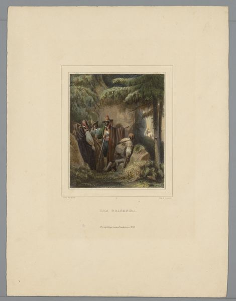 Henri-Gérard Fontallard created this print, “Young man drapes a shawl around his beloved’s shoulders,” using etching and possibly some hand-coloring. The figures are crisply delineated with fine lines, a real contrast to the soft and atmospheric landscape around them. The etching process itself, demanding precise control of the tools, would have required considerable skill. The artist would cover a metal plate with wax, then scratch an image into it with a needle. The plate is then submerged in acid, which bites into the exposed lines, creating grooves that hold the ink. The pressure of the printing press then transfers the image to paper. There’s a lot of careful labor involved in this type of image-making, a world away from the speed of mechanical reproduction. It is a craft process used to produce an image for popular consumption. It reflects how traditional making methods were being adapted to a society that was increasingly driven by consumerism and mass media. It shows how a culture embraces both industrial advancement, and handcrafted care.