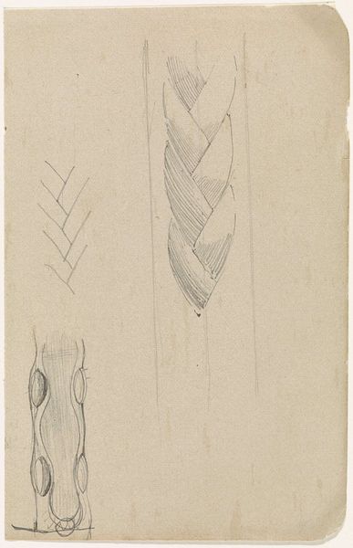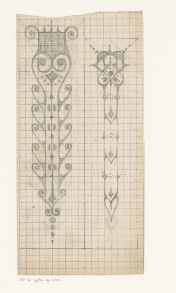 Reinier Willem Petrus de Vries made this drawing of interwoven ornaments, probably on paper, and possibly with ink. It’s all about the process of repetition, where the same motif is reworked and reconfigured over and over again. The drawing has these interwoven lines in a pale blue, almost grey ink, which contrast with the grid of the paper. The grid gives a feeling of flatness, but the pattern feels like it wants to pop out into three dimensions. Look at the ways the artist has varied the pattern, and made subtle changes as they’ve moved down the page. That little diamond shape with the four dots, repeated within the larger diamond pattern, I love that. It’s so simple, so unassuming, but it gives the whole drawing a bit of solidity. This reminds me of some of the pattern drawings of Hilma af Klint, but with a much more grounded, graphic sensibility. It’s like de Vries is riffing on an ancient Celtic knot, but in a very modern, almost minimalist way.