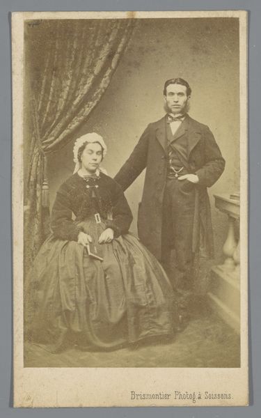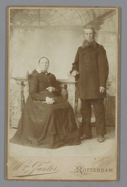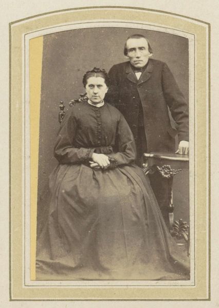 F. Kneifel captured this small portrait of an embracing couple with photography, a relatively new medium at the time. What strikes me is the formality of the image. The couple stands stiffly, their attire suggesting a certain social standing. The woman's hand rests gently on the man's arm, a subtle gesture of connection. In this period, portraiture was more than just documentation; it was a statement about identity, class, and the values one wished to project. Consider how gender roles are subtly reinforced here – the man as the stoic protector, the woman as the demure companion. It invites us to reflect on how societal expectations shape personal expression. This photograph encapsulates a moment in time, a visual echo of the past. It leaves us with a sense of intimacy tempered by the rigid social mores of the era.