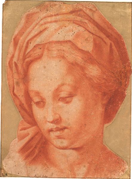 Editor: Raphael's "Man and Woman Crowned with Laurel", rendered in charcoal and chalk, it's… intriguing, a drawing seemingly caught between studies and a final declaration. I’m immediately drawn to the gazes; they don't quite meet, do they? What unspoken story do you see playing out here? Curator: Ah, yes, the dance of averted eyes. It’s curious, isn't it? And beautiful in its subtlety. It whispers of Renaissance ideals, of course, but perhaps also of the complexities within the human heart. See how the laurel wreaths crown them – symbols of honor, achievement... yet, the expressions are far from triumphant. Tell me, what feeling do those shadowed features evoke in you? Editor: Melancholy, maybe? A quiet thoughtfulness. I suppose the laurel wreaths add this layer of classicism and grandeur, but I can’t help but think the drawing also feels unfinished. Almost… vulnerable. Curator: Precisely. Think about it – the sketch-like quality reveals the artist’s hand, his process. It’s intimate. A glimpse behind the curtain, away from the polished finality of a painting. Does this raw intimacy challenge or enrich your perception of Raphael as a master? Editor: Definitely enriches it! Knowing how intentional those artists were. I tend to only consider their work to be completed if in a finalized oil painting. Now, understanding this to be a drawing that would inform other pieces I’m considering its own achievement in thought. It humanizes the whole era for me somehow. Thanks for the lesson. Curator: And thank *you* for sparking a fresh perspective, It’s amazing to ponder over each piece; there are always discoveries to be made in those suggestive lines, waiting for a knowing eye to see what others may pass over.