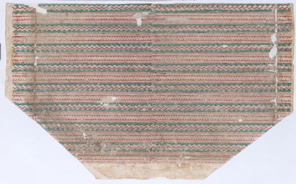 Conrad Wegner created this artwork, "Die Conditorei im Bildern," with a layering technique that evokes a sense of depth and texture, despite its relatively flat surface. Without a specific creation date, one can only speculate as to the historical or social context that may have shaped Wegner's artistic expression. Looking at the image, the horizontal bands of color, alternating between earthy browns and muted greens, might reflect the landscapes and social structures of his time. The use of layering—perhaps mimicking geological strata or even social hierarchies—invites contemplation on how identity is constructed through accumulated experiences and historical contexts. The work prompts reflection on the artist’s positioning within their society. Consider, too, the emotional resonance of Wegner's piece. There's a quiet intensity, a subtle invitation to look closer and feel the weight of unseen histories. It's in these layered textures that "Die Conditorei im Bildern" transcends mere visual display, becoming a poignant reflection on selfhood, society, and the passage of time.
