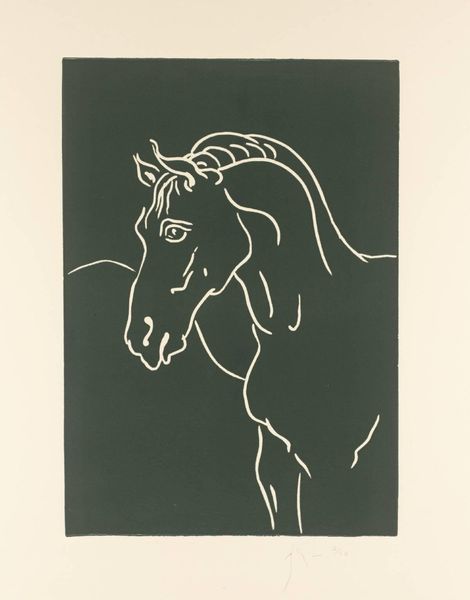 Editor: Here we have Barry Flanagan's "Ganymede," a line drawing of a horse's head held in the Tate Collection. Its simplicity gives it a powerful, almost iconic feel. What visual symbols jump out at you? Curator: The horse is a potent symbol across cultures, often linked to virility, power, and freedom. The title "Ganymede" adds another layer, referencing the Trojan youth abducted by Zeus to serve as his cupbearer. Editor: So, are you suggesting Flanagan is equating the horse with Ganymede? Curator: Perhaps Flanagan is exploring themes of beauty, service, and even subjugation through this pairing. The stark lines emphasize the horse’s form, inviting us to consider its symbolic weight. This is more than just an animal; it’s a vessel of cultural memory. Editor: I see the depth now, symbols echoing through time. Thanks! Curator: Indeed, a simple image can be profoundly resonant.