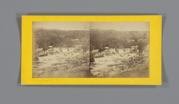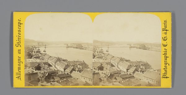 Curator: The stereoscopic gelatin silver print we’re looking at is called “Gezicht op Bryggen in Bergen, Noorwegen,” which translates to "View of Bryggen in Bergen, Norway." It was captured sometime between 1861 and 1870 by Marcus Selmer. Editor: Immediately, I feel transported back in time. The detail is incredible for such an old photograph. It evokes a sense of calm, even though it depicts a bustling harbor. It feels almost dreamlike, like peering into a memory. Curator: Yes, there’s definitely a tranquility to it, despite all the masts and rigging. Selmer really captured the essence of Bryggen. To me, this image embodies a sense of the past layered into the present, you know? Like, you can almost smell the salt and hear the cries of the gulls. But there is this visual emphasis that has some emotional or spiritual element, an almost mystical presence of light as it filters across the still water, too. Editor: That filtering light is key. The way it plays across the wooden buildings and the water, it softens everything and creates this very unique mood. And the water is filled with images of fishing boats, essential vessels and a connection to something bigger – a network to commerce, food, survival. There’s so much symbolism inherent to the sea! Curator: And you can tell it’s an important commercial hub. Those steep roofs probably protect vital stores. These could have even served as the headquarters of the Hanseatic League for centuries – and if that isn’t cultural weight, I don’t know what is. What do you make of the human figures captured in this frozen moment? Editor: They add a dimension of everyday life. Notice their diminutive size and this amplifies the scope of this place. Bryggen’s buildings stand so sturdily on their foundations, while the world transforms and changes all around them, yet there they are, steadfast and a visual reminder of cultural memory, always on the brink of sailing, always on the cusp of a catch. Curator: What is so wonderful is how Selmer used the then new medium to preserve that tangible reality, yet through this choice of image making—almost elevated it with his perspective, through that ethereal touch. He lets you ponder the passage of time in ways paint could not. Editor: Exactly, it gives such clarity in its depiction, which in itself gives clarity of feeling about the landscape and those buildings – and yes, the movement of time! It encourages reflections on our cultural inheritance, its impact on us – on me - it just feels remarkably resonant and makes it really worth your while to stop and really experience that impact.