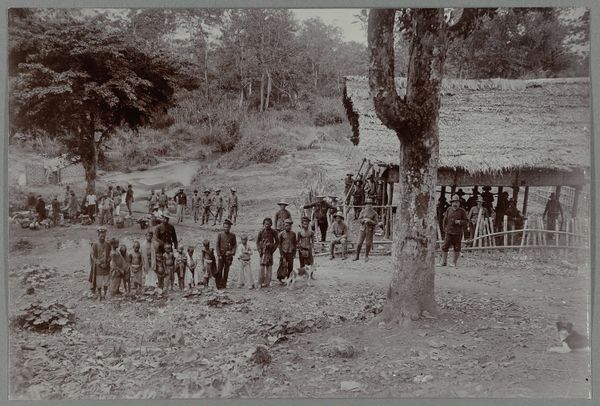 Editor: Here we have a gelatin silver print entitled "Groepsportret van onbekende bewoners van de Mentawai-eilanden," taken by Christiaan Benjamin Nieuwenhuis sometime between 1891 and 1912. The photo seems to show a large group posed in front of what appears to be their homes. It’s striking how directly they are looking at the camera. How do you interpret the context surrounding an image like this? Curator: Well, this image offers a complicated look into ethnographic photography. While seemingly straightforward, it's crucial to consider the power dynamics at play. Nieuwenhuis, presumably a Western photographer, is capturing a group portrait of Mentawai people. What purpose did these images serve back then? Were they scientific documentation, or something else? Editor: That's a good point. It feels less like art and more like a record, potentially tied to colonial interests. Does the museum’s choice to display it today change its meaning? Curator: Absolutely. Displaying it in a museum now inevitably reframes it. We have to grapple with the legacy of colonialism and how images like these contributed to certain understandings - or misunderstandings - of indigenous cultures. Consider the arrangement; the subjects are posed, almost arranged for the photographer. Whose gaze is privileged here, theirs or the colonizer's? Editor: So, its presence in a modern museum setting almost forces us to confront a history of exploitation and representation, rather than just passively observe it as an objective record. Curator: Precisely. And it challenges the institution itself. By showing such a work, the museum has to consider its own role in perpetuating or dismantling colonial narratives. What do we learn about these individuals versus what do we assume? It’s less about the subjects themselves, but the circumstances in which this photograph was created. Editor: It's a reminder that even documentary-style photographs carry a huge weight of historical context and power. Thanks, I never considered its presence in the gallery as part of its overall narrative. Curator: My pleasure. Analyzing how institutions shape meaning is half the battle in appreciating pieces like this one.