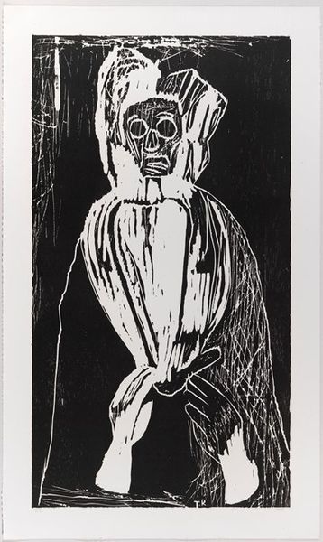 Ernst Ludwig Kirchner made this striking woodcut, "Annette Kolb," by carving into a block and printing it, a process that revels in directness. The stark black and white isn't just contrast; it's a whole mood. Look at how he's hacked away at the wood to define her face. Those bold, almost brutal lines aren't trying to be pretty; they're digging into something deeper, maybe even a little unsettling. I love how the raw texture of the wood insists on being part of the story. See how the lines around her eyes aren't just wrinkles; they're like fissures, suggesting she's seen some stuff. And the lips, so meticulously carved, they seem to vibrate. It's like Kirchner is wrestling with representation itself, pushing the boundaries of what a portrait can do. You could say it has a kinship with the graphic force of Munch, or perhaps some later work by Baselitz. It reminds us that art is a conversation, a restless exploration, not a neat conclusion.