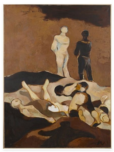 Curator: Magnus Enckell painted this piece, titled "Resurrection, Copy of the Right Half of the Altarpiece in Tampere Cathedral," in 1907, using oil paint. What strikes you initially about it? Editor: The pale color palette immediately creates a sense of ethereal calm. The subjects are bathed in this milky light, softening the overall impression, almost like a faded fresco. There’s a deliberate sparseness that evokes a feeling of tranquility but also detachment. Curator: I agree; it’s a powerful use of color to underscore the allegorical themes at play here. Enckell's choice of pale hues and relatively simple forms invites a structural reading. Notice how the figures are arranged in a shallow, frieze-like composition, echoing classical motifs of resurrection and spiritual ascent. The painting’s compositional balance reinforces its intended theme: rebirth. Editor: Absolutely, and I wonder how much that careful arrangement is connected to its materiality, especially as it is based on an altarpiece. These types of artworks and the use of oil paints served specific functions within religious spaces of the time. Curator: Good point! But considering the symbolism—the figures emerging from what seems like a terrestrial realm into a bright expanse, unclothed and vulnerable— it’s difficult not to focus on the structuralist notion of binary oppositions. Light and shadow, earth and sky, life and death. Enckell reduces them to pure form. Editor: Indeed, but let’s consider the practical work involved, especially its origins as part of an altarpiece. This artwork, through its chosen materials and Enckell's labor, acts as an object of both reverence and societal aspiration. Its original display in a cathedral makes it a focal point within that setting, enhancing its physical presence and elevating its thematic significance. Curator: That’s certainly valid. By simplifying form and employing such a muted color palette, Enckell guides our gaze and helps create a spiritual atmosphere. He prompts introspection about humanity, death, and potential rebirth. Editor: Right. When viewed from a materialist viewpoint, we can view Enckell's reproduction as a method of preserving and transforming the sacred meaning connected with the altarpiece, rendering this into a more accessible emotional and reflective encounter. It really captures the transformation and power through both symbol and physical rendering.