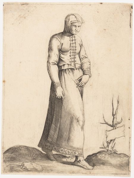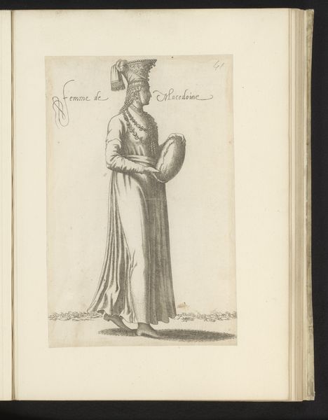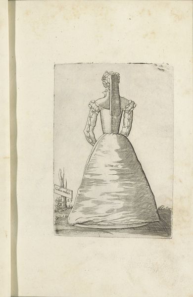 This print, titled "Spaanse vrouw" or Spanish Woman, was made by Ferando Bertelli. It gives us insight into the world of printmaking and its role in disseminating images and ideas. The print was made through etching, where lines are incised into a metal plate using acid, and then filled with ink to create an image. In Bertelli’s time, printmaking was a booming industry, making images more accessible. This specific print would have been one of many, catering to a growing interest in different cultures and exoticism. Examining the work through the lens of labor and production reveals interesting things. The artist, or their workshop, put in hours to create this image. The very nature of the print, an easily reproducible image, hints at the advent of mass production. Looking at this print, we must remember that it's not just an aesthetic creation, but also an object tied to labor, trade, and the circulation of images. By considering the making and the context, we gain a better understanding of the artwork's meaning.
