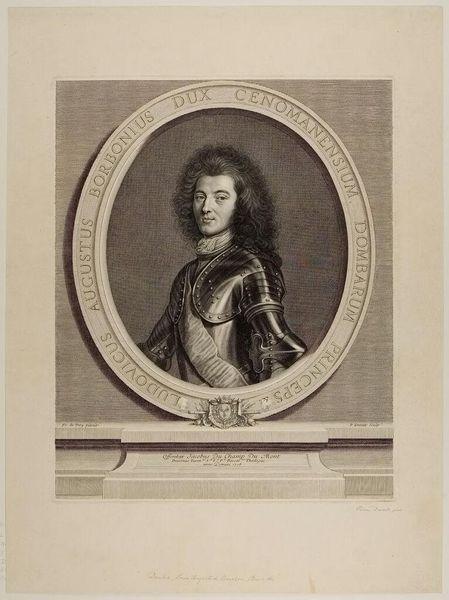 Curator: This is Jean Audran's portrait of Clement Auguste, Prince of Bavaria. Editor: The cool detachment of the figure is striking, almost clinical. The precision of line creates a sense of distance. Curator: Audran created this image during a time of significant religious and political upheaval. Clement Auguste's position as both Prince and Bishop embodies the complex intersection of power and faith. How does this portrayal uphold or challenge these hierarchies? Editor: Visually, the contrasting textures and values define his presence. The meticulous rendering of the robe draws the eye, while the smoothness of his face reflects an idealized representation. Curator: Indeed, the soft handling of the face presents the subject as divinely appointed, thus lending credence to the Church's authority in a changing world. Editor: The image certainly speaks volumes about the prevailing artistic conventions of the era, and its subject. Curator: Ultimately, this work underscores art's role as a reflection of and a contributor to society's power dynamics.