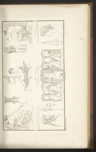 Editor: This is "Begrafenisceremonie," or "Funeral Ceremony," a pen and ink drawing from 1820 by Cécile Beauvallet. It seems to depict a scene from antiquity. The composition is fragmented, with multiple vignettes. How do you interpret this work and its connection to the sociopolitical context of its time? Curator: Looking at the piece, it's tempting to view it solely through the lens of neoclassicism – the emphasis on order and idealized forms. But I think a deeper dive is necessary. What is the role of death in solidifying social structures, particularly in a post-revolutionary context, such as 1820? Notice how the rigid lines create a sense of somber control; how might this reflect a yearning for stability following a period of upheaval? Editor: That's interesting. I hadn't thought about the desire for stability. Are you suggesting the artist might be commenting on the use of ceremony to reinforce power structures? Curator: Precisely! These depictions of ancient rituals weren't just historical recreations. Consider the performance of gender within these funeral rites – who holds power? Who grieves, and how are they permitted to grieve? Even the medium—pen and ink—evokes the formality of record-keeping, which has historically excluded the voices and narratives of anyone outside the socio-political elite. Editor: So, the artwork isn't just about antiquity, but also about the present, reflecting and potentially critiquing contemporary society? Curator: Absolutely. Beauvallet’s art, while seemingly focused on the past, engages in a dialogue with the present, questioning who gets remembered and whose stories are silenced. Consider who typically has access to create art. Which people's legacies are commemorated and memorialized through it, while other folks' bodies simply return to the soil, without ever earning a place in the grand cultural memory? Editor: I see it differently now. It makes me consider who’s telling the stories, and whose perspectives are prioritized in historical narratives and visual art. Thank you! Curator: A vital point. Keep challenging yourself to read artworks not just as aesthetic objects, but as documents that speak to power, identity, and historical context.