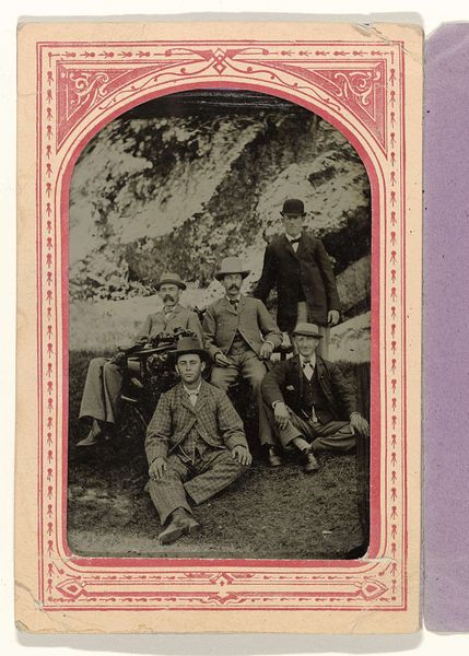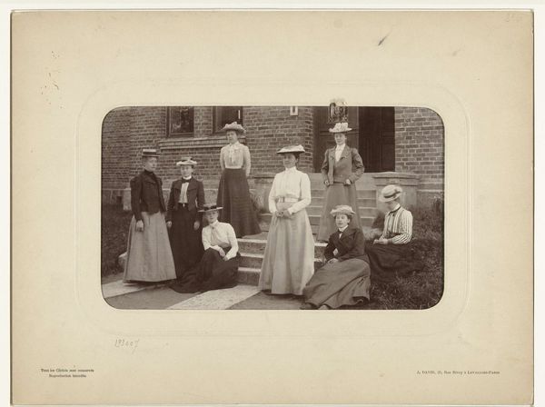 This is an undated photograph of the English King Edward VII and his family in kilts, made by an anonymous photographer. The composition centres on a symmetrical arrangement of figures, posed against a textured backdrop of foliage and a rustic door. Notice the way the photographer has used light to gently model the faces and clothing, creating a soft, sepia-toned image that emphasizes the textures of the tweed and tartan. The framing, with its rounded top, adds a formal quality, contrasting with the informality suggested by the family's attire and relaxed poses. Semiologically, the kilts speak to a constructed identity, perhaps intended to emphasize a connection to tradition and the Scottish Highlands. The symmetry and the formal composition create a structured representation of royal identity, hinting at the complexities of representation and the performance of power. The photograph invites us to consider how identity is both constructed and conveyed through visual signs.