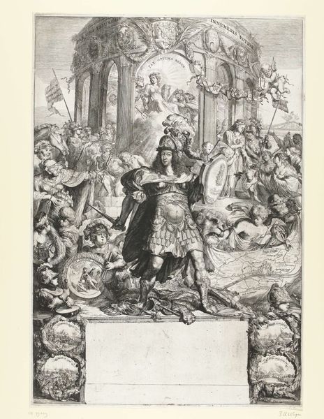 This etching, titled ‘Personification of Europe Freed from the Net of Wars by European Rulers,’ was created around 1742 by Jan Ruyter. The image reflects Europe’s tumultuous state during the 18th century, a time marked by frequent conflicts and power struggles. The central figure, a female personification of Europe, is depicted being released from a net, symbolizing the wars that ensnared the continent. The European rulers, adorned in classical armor, stand as both liberators and, perhaps, instigators of these conflicts. This portrayal invites us to consider the complex relationship between power, gender, and national identity. The female figure embodies Europe, casting it as a vulnerable entity in need of male protection. However, who protects her from her protectors? The image evokes a sense of hope amidst the ruins of war, yet it also acknowledges the ever-present threat of future conflicts. How might we re-imagine these power dynamics today, in an era still marked by conflict and the struggle for liberation?