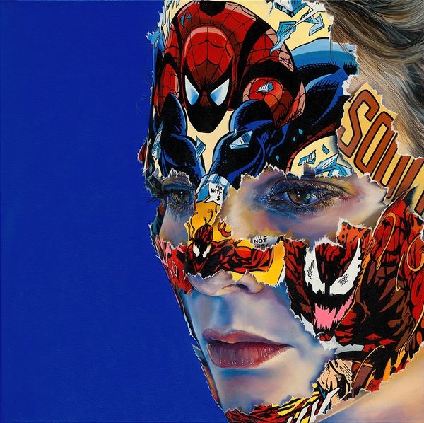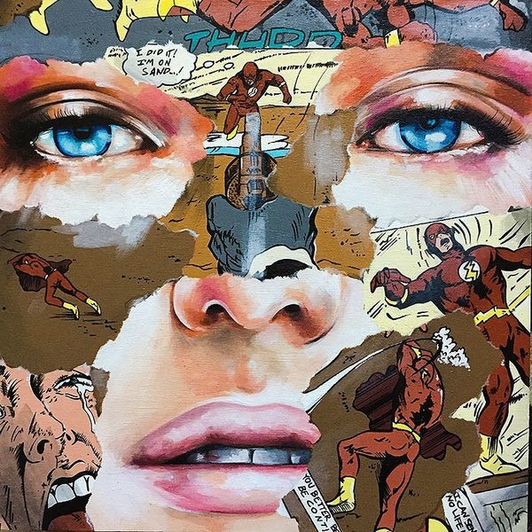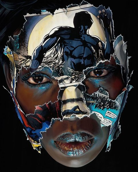 Sandra Chevrier made this powerful piece, La Cage et la larme du peintre, with mixed media, juxtaposing painted portraiture with comic book imagery. The way she tears and layers those comic fragments over the face is a kind of beautiful violence, isn’t it? I am really drawn to the push and pull between the smooth, almost classical rendering of the skin and the rough edges of the comic panels. The colors, too, play a part; that pop-art brightness against the softer tones of the face. Look at how one of the eyes is obscured but the other is not. It's a small detail, but it shifts the whole emotional landscape. It makes me think of how we construct our identities from fragments, from the stories we tell ourselves and the images we consume, how those things both reveal and conceal who we are. Chevrier reminds me a bit of artists like Wangechi Mutu, who also use collage to explore themes of identity and representation. Ultimately, this work is a reminder that art can hold multiple truths, inviting us to see the world in new and unexpected ways.