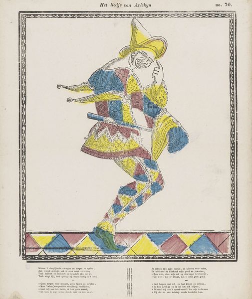 Editor: Here we have Erte’s “Sheerazade, Almee,” a graphic art piece evoking the Art Deco style. The geometric patterns and bold colors immediately strike me as very vibrant and glamorous. What do you see in this work? Curator: I see a rich tapestry of cultural appropriation woven with the threads of early 20th-century exoticism. The figure, ostensibly representing a Middle Eastern dancer, is filtered through a distinctly Western, Art Deco lens. How does the image perpetuate or challenge existing Orientalist tropes of the time? Editor: I guess I hadn’t considered that perspective. It seemed celebratory, but now I see the potential for misrepresentation. Curator: Precisely. Erte's work often walks a tightrope between admiration and appropriation. The stylized geometric shapes and the simplification of form were hallmarks of Art Deco, but they also flatten the cultural complexities of the East into easily digestible, fashionable imagery for a Western audience. What do you think the decorative elements and colours contribute to the image's overall message? Editor: They seem to enhance the idea of luxury and fantasy, almost like a stage set for a performance. It feels very detached from any lived reality. Curator: Yes, it reinforces a sense of distance. This detachment allows the viewer to consume the "exotic" without engaging with the socio-political realities of the cultures being represented. And, in what ways could one analyze it under the lights of gender studies and queer theory? Editor: I hadn't really thought of applying those concepts. Now that you mention it, the figure's presentation could be interpreted as playing with ideas around gender performance, challenging traditional representations... Curator: Exactly! By thinking critically about context and intersecting cultural narratives, we reveal the intricate ways art interacts with broader societal power structures. It makes you appreciate the beauty of it all and consider these aspects, no? Editor: Definitely. This gives me a lot to think about, viewing this piece now. Thank you.