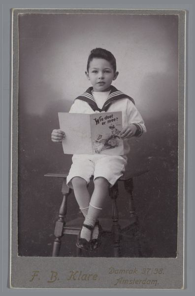 Editor: This photograph, simply titled "Untitled (little boy in cowboy outfit)" by John Deusing, captures a young boy in full western regalia. It's quite charming, almost like a vintage advertisement. What strikes you most about this image? Curator: What grabs me is the staged innocence. It's not just a kid playing dress-up; it's a carefully constructed image of childhood, a dream sold to us in monochrome. Do you feel that, too? Editor: Absolutely! It's idealized, but also slightly melancholic. It makes me wonder about the gap between the image and the boy's reality. Curator: Exactly! That tension is the photograph's magic. It asks us to consider how we create and consume these little narratives of who we want to be. A potent reminder of the stories we weave around ourselves, isn't it? Editor: Definitely, it’s a lot more complex than it looks at first glance.