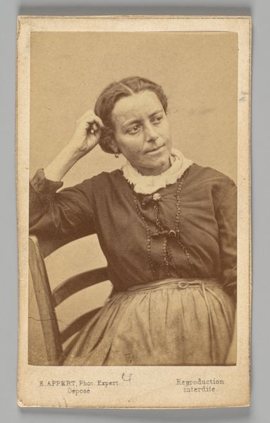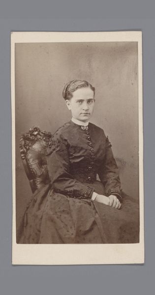 This portrait of an unknown woman was produced by the photography studio of Dahllöf & Co. in Stockholm, using a process that was both technical and commercial. Photography in this era was undergoing rapid industrialization, transforming from a niche practice to a widespread service. The creation of these portraits involved skilled labor, from setting up the shot to developing the image. However, it was also a business, reflected in the studio's branding at the bottom of the card. The very act of commissioning a portrait became more accessible, yet it also reinforced social hierarchies, determining who could afford to have their image captured and preserved. The sepia tone, the paper card, and the woman's formal attire all speak to a specific time and place. Consider the labor involved in producing the chemicals, manufacturing the equipment, and the work of the studio staff. This was all part of a burgeoning industry that profoundly changed how people saw themselves and the world around them.