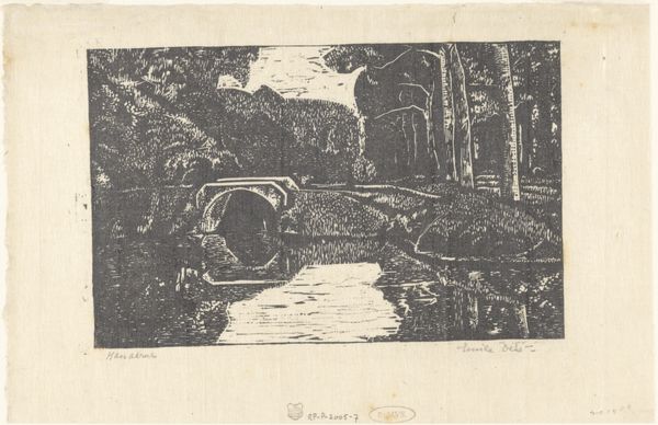 Jacob Pieter van den Bosch created this woodcut print called 'Karpervijver op Elswout in Overveen' in 1939. The print depicts a carp pond located in Elswout, near Overveen, Netherlands. This kind of imagery reflected a broader cultural interest in landscape and nature, which developed in the late 19th century, as cities grew and people became more aware of the impact of industrialization. In the Netherlands, this interest was also tied to a sense of national identity. Artists like Van den Bosch found inspiration in the Dutch landscape and contributed to an artistic movement that emphasized the beauty and uniqueness of the country. To fully understand this artwork, one needs to consider the historical context of landscape art, the rise of national identity, and the impact of urbanization on cultural values. Such research can provide us with a richer understanding of the artwork’s significance.