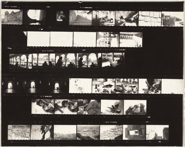 Robert Frank made this contact sheet, Guggenheim 88/Ford 11--Detroit, by exposing photographic paper to strips of black and white 35mm film negatives. It's a process that reveals everything, like the artist opening up his studio to us. Here, the texture isn't in the material itself but in the grit of the images, the high contrast and blurriness of the shot. It's all about how Frank physically moved through the world, observing and recording moments, rather than staging them. Look at the lines of the sprocket holes and the numbers running down the sides of the images, these create a linear rhythm through the piece. They draw your eye down the work, so that you start to read the individual images. This makes me think of Ed Ruscha and his use of seriality. Both artists capture something about the world through repetition and subtle variation, presenting an open-ended commentary on culture. There are no definitive answers here, just a way of seeing and feeling.